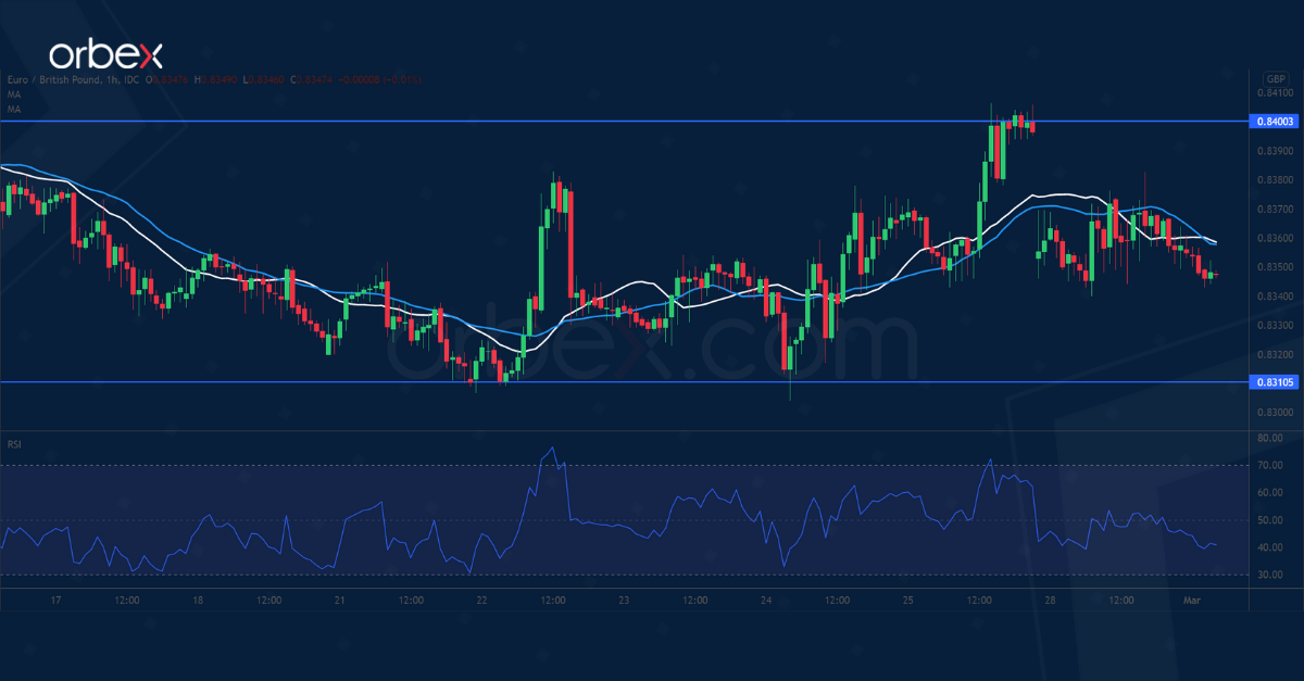 وتشير محاولة الصعود أعلى ٠.٨٤٠٠ إلى تحيز إيجابي في وقت يقوم فيه البائعون بتغطية مراكزهم. وكان المستوى ٠.٨٣١٠ دعماً قوياً. وقد يعتري مزاج السوق التفاؤل أكثر إذا نجح المشترون في الثبات فوق هذا المستوى.