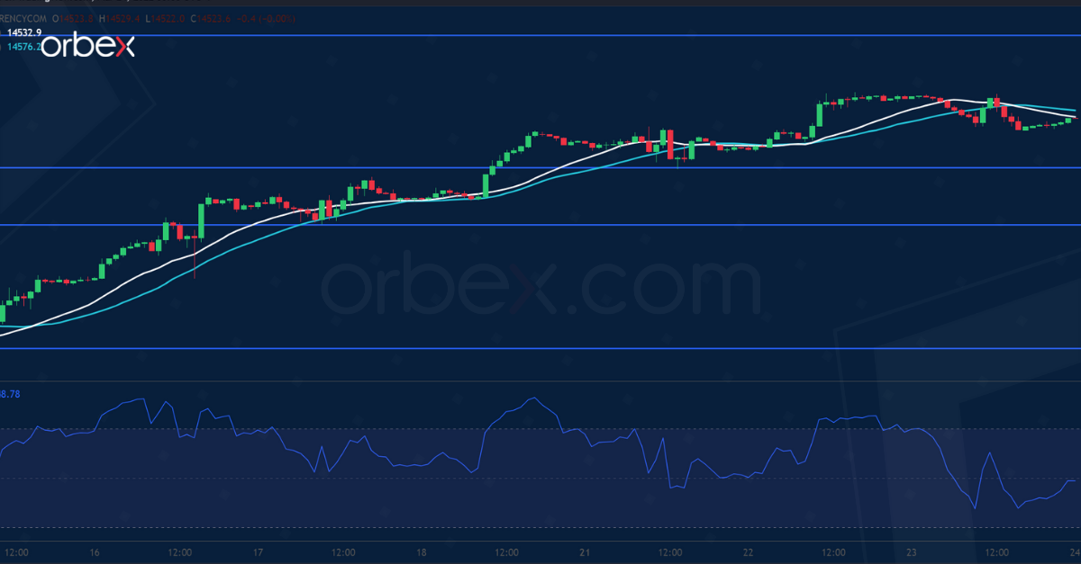 وتشير القمة الثلاثية في مؤشر القوة النسبية إلى فرط الارتفاع، وربما يمتنع المشترين عن رفع عروضهم في منطقة العرض. ويعد المستوى ١٤٢٠٠، دعم جديد من الاختراق الأخير. وقد يتعرض المؤشر لعمليات بيع قصيرة الأجل إذا كان يعاني في سبيل الارتداد.