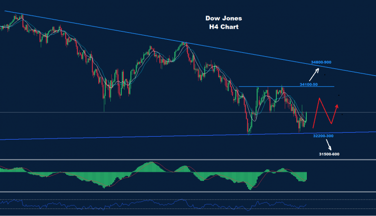 لا يزال السوق يحتفظ بمنطقة التداول على المدى القصير بين الدعم 300-32200 والمقاومة 34150.