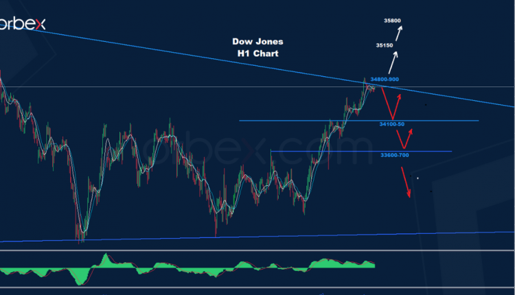 فوق 34900 قد نتوقع موجة تقدم أخرى نحو 35150 و35800.