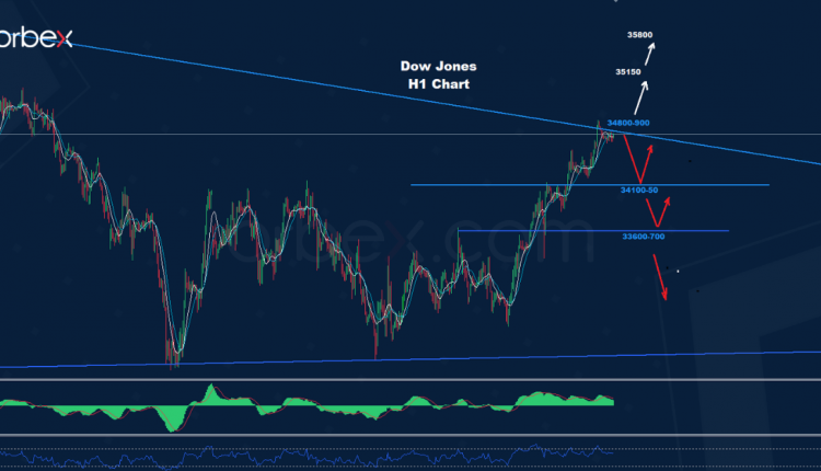 فوق 34900 قد نتوقع موجة تقدم أخرى نحو 35150 و35800.