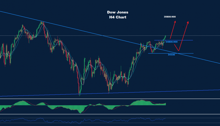 تمكن مؤشر الداو من تنشيط موجة تقدم أخرى بعد كسر المقاومة 900-34800.
