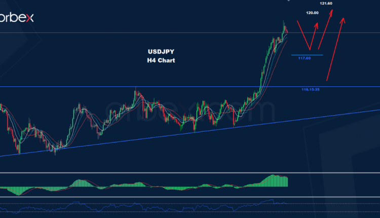 كما نرى على الرسم البياني، يواجه السوق دعائم عند 117.60 و 35-116.15 حيث إن أي تصحيح هبوطي في السوق نحو أحد تلك الدعامات سينشط تقدماً أبعد نحو مستويات 120.00 و121.60.