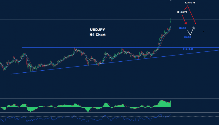 كما نرى على الرسم البياني ، يواجه السوق مقاومة حول 70-121.60 و 123.75 والتي قد تدفع إحداها للتصحيح الهبوطي