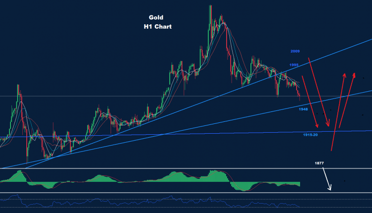 تمكن الذهب من استئناف موجة الهبوط هذه حيث يقترب السوق من منطقة 20-1915 المستهدفة.