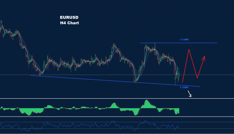 تمكن السوق من اختبار اتجاه الدعم حول 1.1105 الأسبوع الماضي بينما يظهر هذا الترند الدعم الآن حول 1.1090 كما نرى على الرسم البياني.