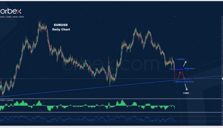 قد يؤدي الإغلاق اليومي تحت 1.0800 إلى تشكيل موجة هبوط جديدة نحو 1.0600 فما دون.