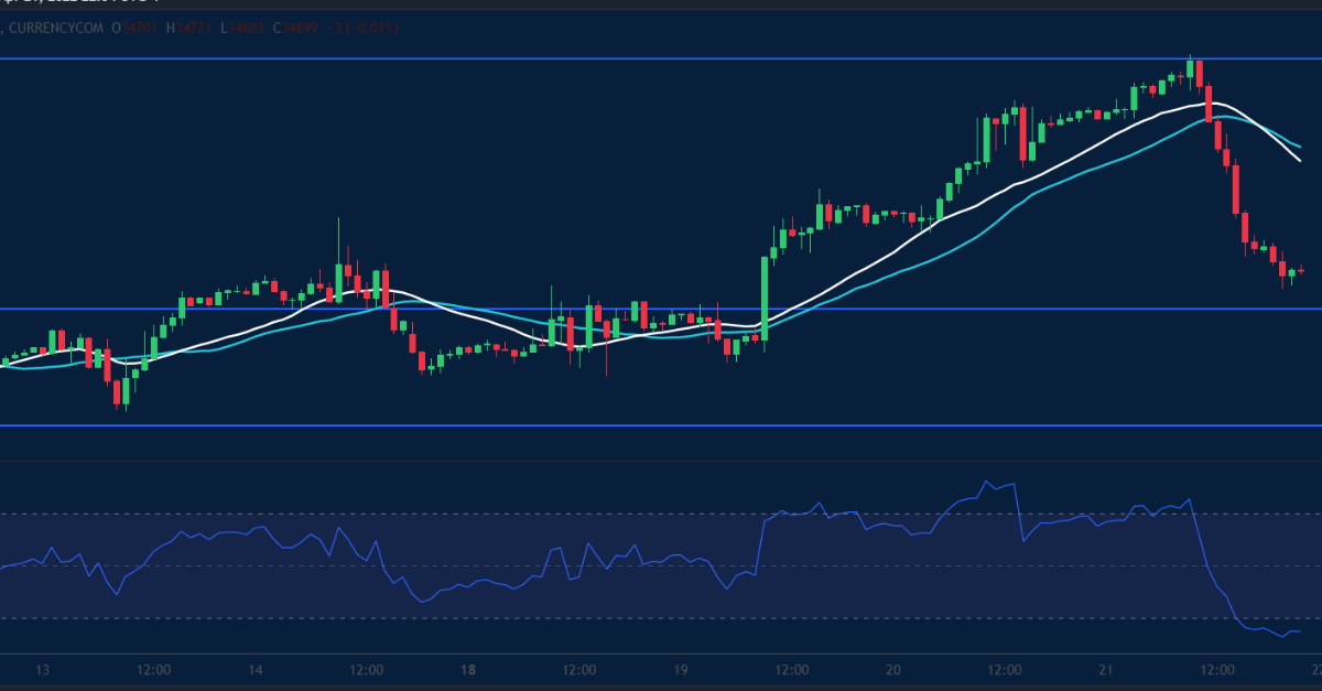 تجدر الإشارة إلى أن الإغلاق فوق أعلى مستوى لشهر مارس عند 35400، قد أسهم في إعادة المؤشر إلى المسار الصحيح. ويؤكد التقاطع الصعودي للمتوسط المتحرك على الرسم البياني اليومي على هذا أيضًا، مما يدل على تسارع الانتعاش الحالي.