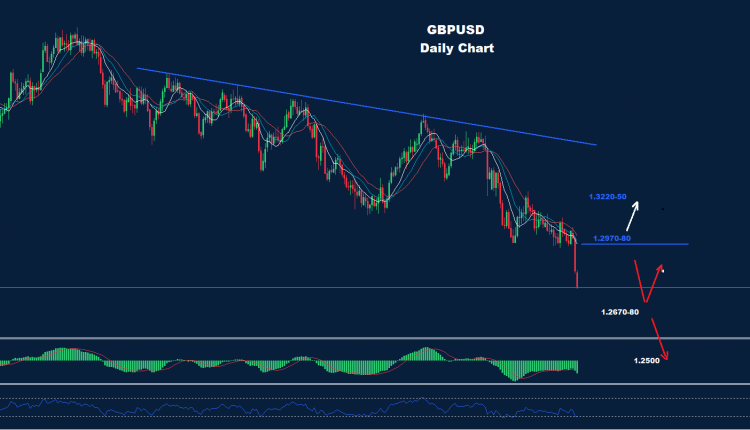 تحت 1.2670 المزيد من الانخفاض نحو 1.2500 قد يضرب السوق بحذر حيث سيكون السوق داخل منطقة ذروة البيع