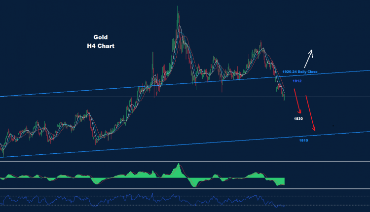 تمكن الذهب من ضرب أسعار ما دون الدعم 1878 اليوم والذي قد يكون أول إشارة لموجة هبوط في الطريق.