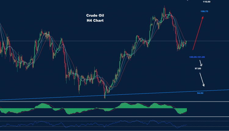 تمكن النفط الخام من إضافة المزيد من حركة تصحيح الهبوط حيث تمكن من الانخفاض إلى ما دون دعم 105.40 وتمكن أيضاً من الوصول إلى المنطقة 102.00.