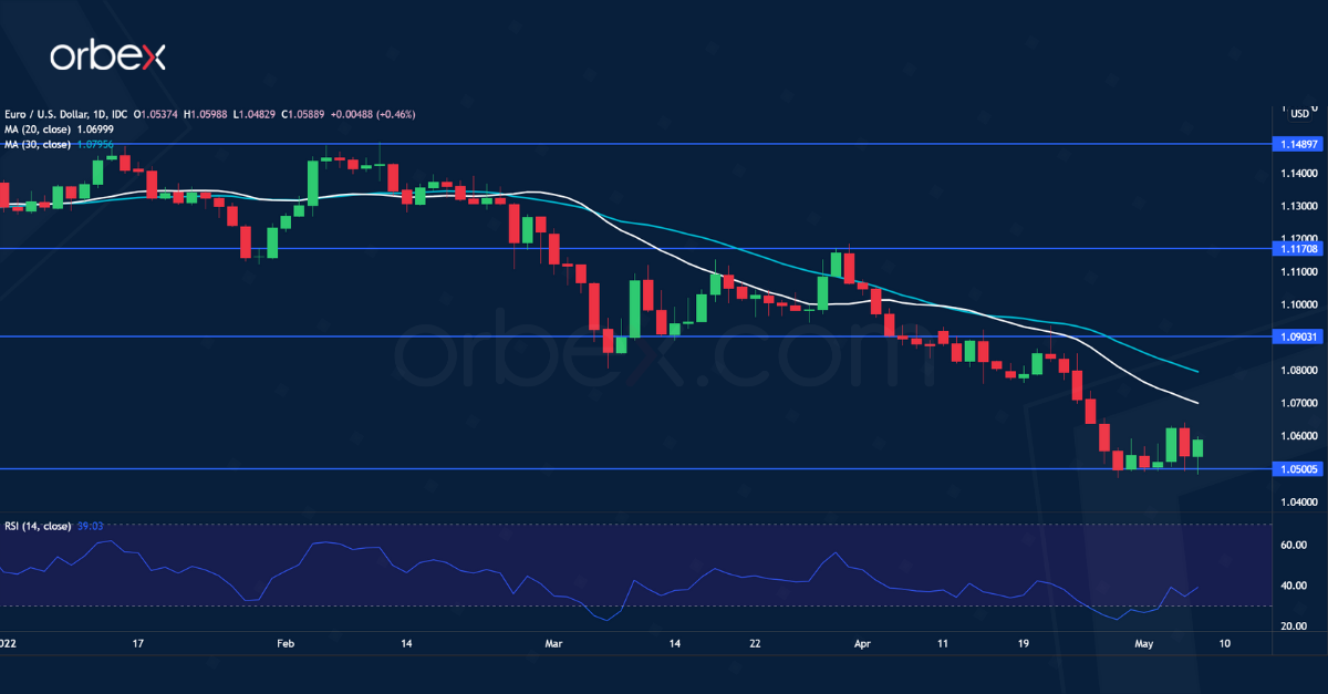 يعاني اليورو فيما لا يزال البنك المركزي الأوروبي منقسماً حول رفع أسعار الفائدة. ودفع التباين الحاد في السياسة بين كل بنك الاحتياطي الفيدرالي والبنك المركزي الأوروبي اليورو إلى أدنى مستوى له في خمس سنوات. ولا شك أن الصراع الأوكراني على أعتاب بروكسل يزيد حسابات المركزي الأوروبي تعقيداً. ومع اقتراب التضخم من أربعة أضعاف النسبة المستهدفة من قبل البنك المركزي، فلا تزال الأسواق تتوقع تشديداً متواضعاً يبدأ من شهر يوليو. وقد يجد اليورو متنفساً من التوقف المؤقت للاتجاه الصاعد في الدولار إذا تم تسعير تشدد بنك الاحتياطي الفيدرالي. وحتى ذلك الوقت، قد يستمر الضغط على اليورو بسبب السلوك السعري السلبي. وقد يذهب الزوج صوب المستوى ١.٠٣٠٠ حال الانخفاض دون ١.٠٥٠٠. فيما يعد المستوى ١.٩٠٠ مقاومة جديدة.