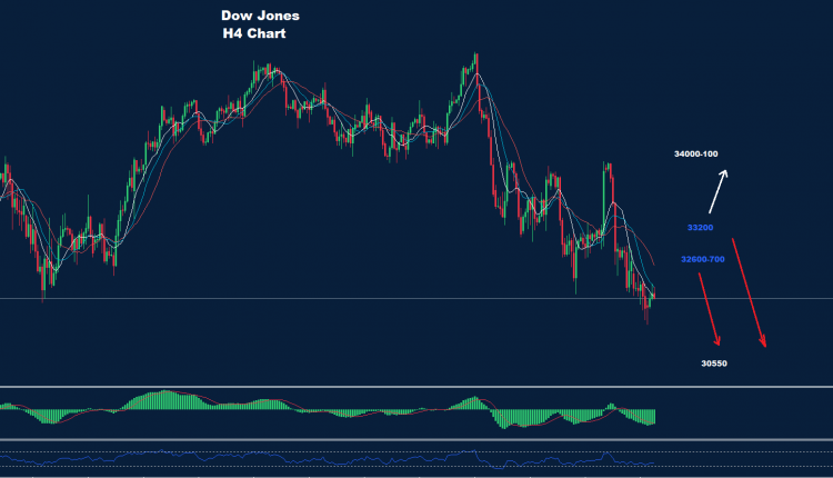 لقد نصحنا قبل ذلك بأن موجة الاتجاه الهبوطي هذه قد تبدأ أسفل مستويات 32200 في السوق والتي تمكن مؤشر داو جونز من ضربها الأسبوع الماضي