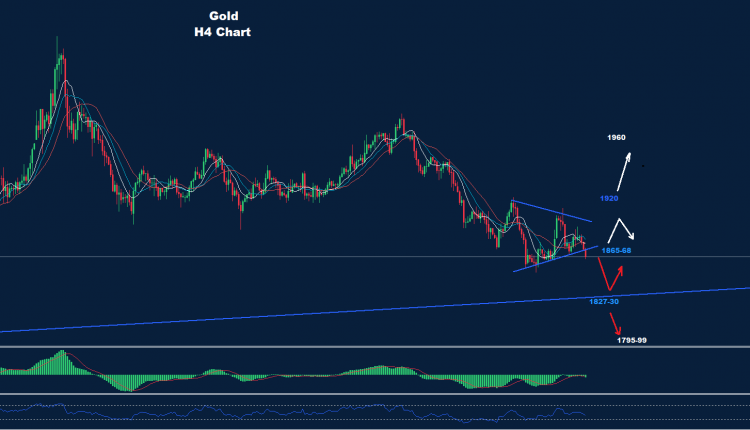 بدأ المعدن الثمين في إظهار مؤشرات للتراجع و الهبوط بدءاً من هذا الأسبوع بينما نصحنا الأسبوع الماضي بأنه قد يبدأ ضغط الانخفاض هذا تحت 1865