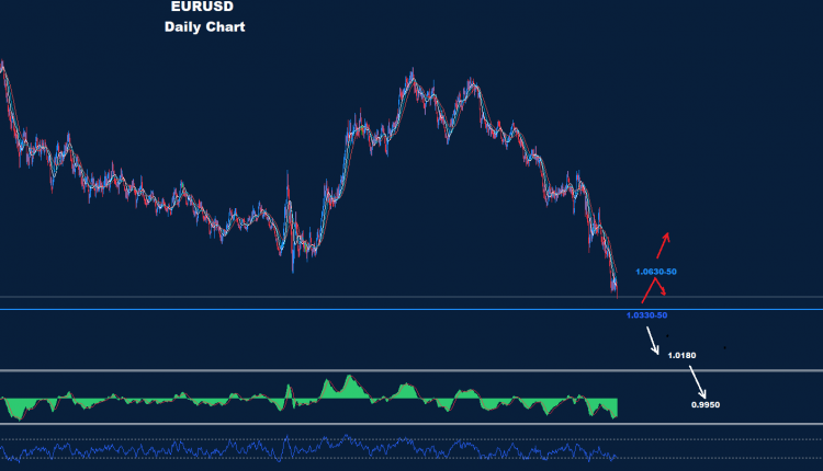 تحت 1.0330 قد يدخل اليورو موجة اتجاه هبوطي جديدة مع الأهداف الأولى نحو 1.0180 و 0.9950