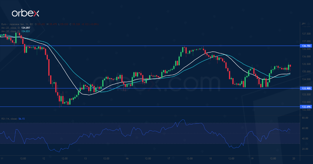 تعافى الين الياباني بفضل الارتفاع القوي لمؤشر أسعار المستهلكين في شهر أبريل. وكان الانخفاض الحاد دون مستوى الدعم اليومي ١٣٥.٠٠ المتزامن مع المتوسط المتحرك لمدة ٣٠ يوماً قد تسبب بموجة تصفية. ويشير الضعف في الارتداد الأخير إلى انعدام الرغبة بالشراء. ويعد انعطاف الحركة في الاتجاه المعاكس عند ١٣٦.٧٠ والاختراق اللاحق أدنى ١٣٤.٥٠ إشارات على أن البائعين ربما قد سيطروا على حركة السعر. ويمثل السعر ١٣٣.٩٠ دعماً جديداً، فيما يعد السعر ١٣٢.٧٠ مستوى هام، حيث أن اختراقه يعني أن الهبوط هو المسار الأيسر أمام حركة الزوج، وهو ما سيمهد الطريق لعمليات بيع واسعة النطاق صوب المستوى ١٣١.٠٠.