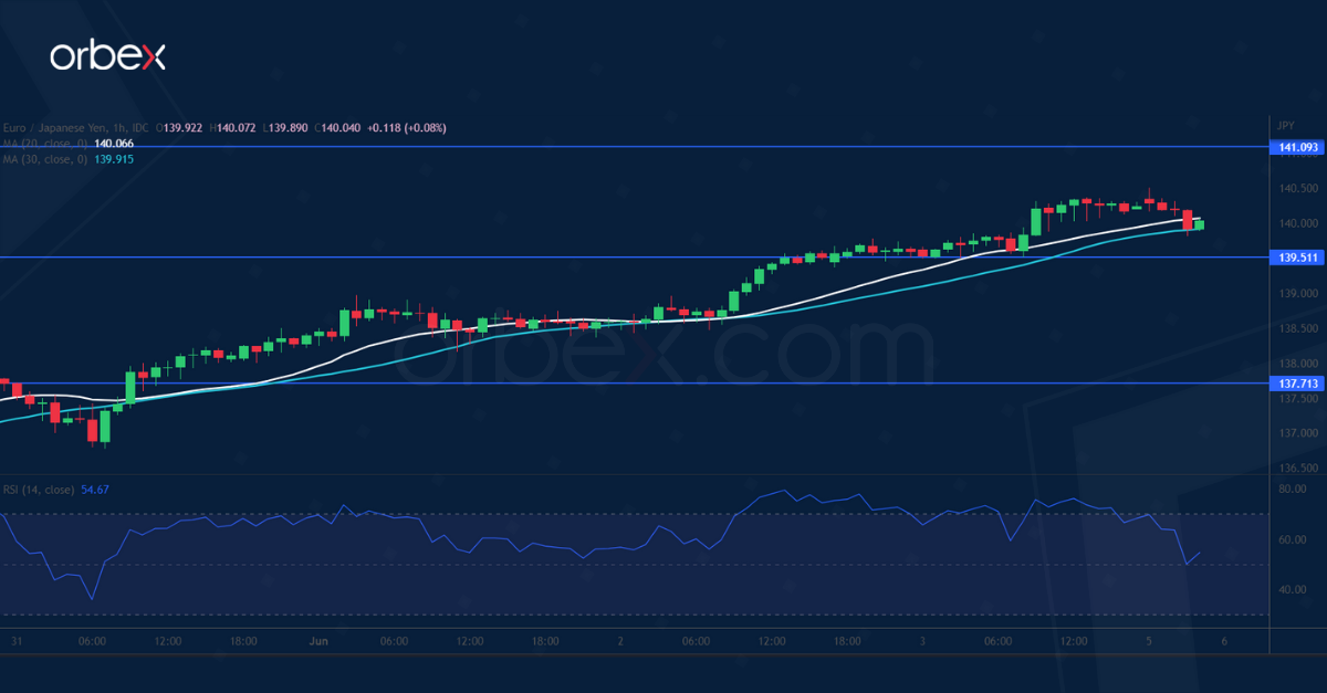 ساهمت توقعات المتداولون بتشدد البنك المركزي الأوروبي في اجتماعه للسياسة النقدية هذا الأسبوع في ارتفاع اليورو. وقد زاد الإغلاق أعلى قمة أبريل والمستوى النفسي ١٤٠.٠٠ بشكل كبير من حالة التفاؤل. وقد يتطلع متابعو الاتجاه للانضمام بصفقات منخفضة السعر. وتقع العقبة التالية عند ١٤١.٠٠، وهي قمة يونيو ٢٠١٥، ومن شأن اختراقها أن يرفع الزوج إلى ١٤٢.٠٠. وقد يحد دخول مؤشر القوة النسبية في منطقة ذروة الشراء من الزخم لفترة وجيزة. وفي حال التقطت مسيرة ارتفاع اليورو أنفاسها، فإن منطقة العرض السابقة قرب ١٣٠.٥٠، قد تحولت إلى مستوى دعم.