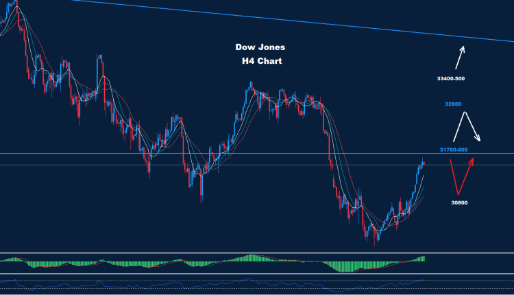 تمكن مؤشر الداو من الارتداد نحو الهدفين 30950 و 31450 بينما تمكن من إضافة المزيد من التقدم اليوم