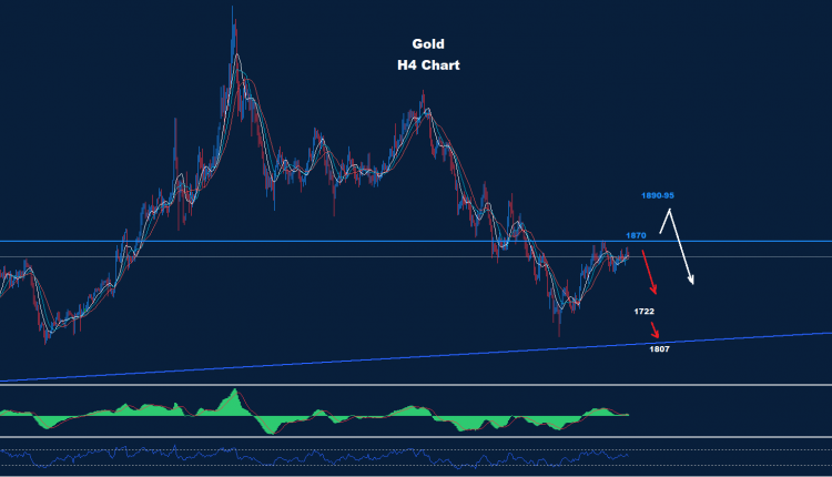 لا يزال الذهب يحتفظ بالتداولات تحت المقاومة 1870 بينما قد يدفع هذا المستوى السوق إلى مزيد من الانخفاض في وقت لاحق