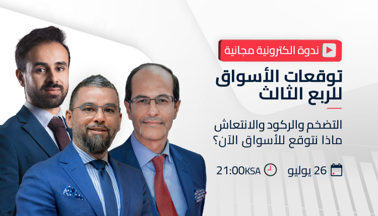 حيث سيقدم لكم مدير التدريب واستراتيجية الأسواق، محمد المريري، وكبير استراتيجيي الأسواق عاصم منصور، ومحلّل الأسواق المالية أشرف العايدي، نظرتهم للأسواق بالربع القادم في ندوة الكترونية تعليمية بعنوان “التضخم والركود والانتعاش: ماذا نتوقع للأسواق في الربع الثالث من العام؟”.