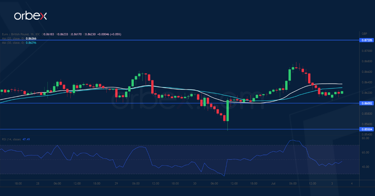 يعاني الجنيه الاسترليني نتيجة العجز الضخم في الحساب الجاري للمملكة المتحدة. ويؤكد الارتفاع من المستوى ٠.٨٥٥٠ والذي يقع على المتوسط المتحرك لمدة ٢٠ يوماً على أنها منطقة طلب قوية. وقد حفز الإغلاق أعلى ٠.٨٦٦٠ الرغبة الشرائية على المدى القصير، وهو ما دفع اليورو نحو القمة الأخيرة عند ٠.٨٧٢٠، وهي عقبة رئيسية قد حدت من ارتفاع العملة الموحدة منذ أبريل من العام الماضي. ومن شأن الاختراق أن يوسع نطاق الارتفاع صوب ٠.٨٩٠٠. وفي غضون ذلك، تسبب وجود مؤشر القوة النسبية في منطقة ذروة الشراء في تراجع قصير للزوج. ويعتبر المستوى ٠.٨٦٠٠ هو الدعم الذي قد يتطلع فيه المشترين لزيادة الصفقات.