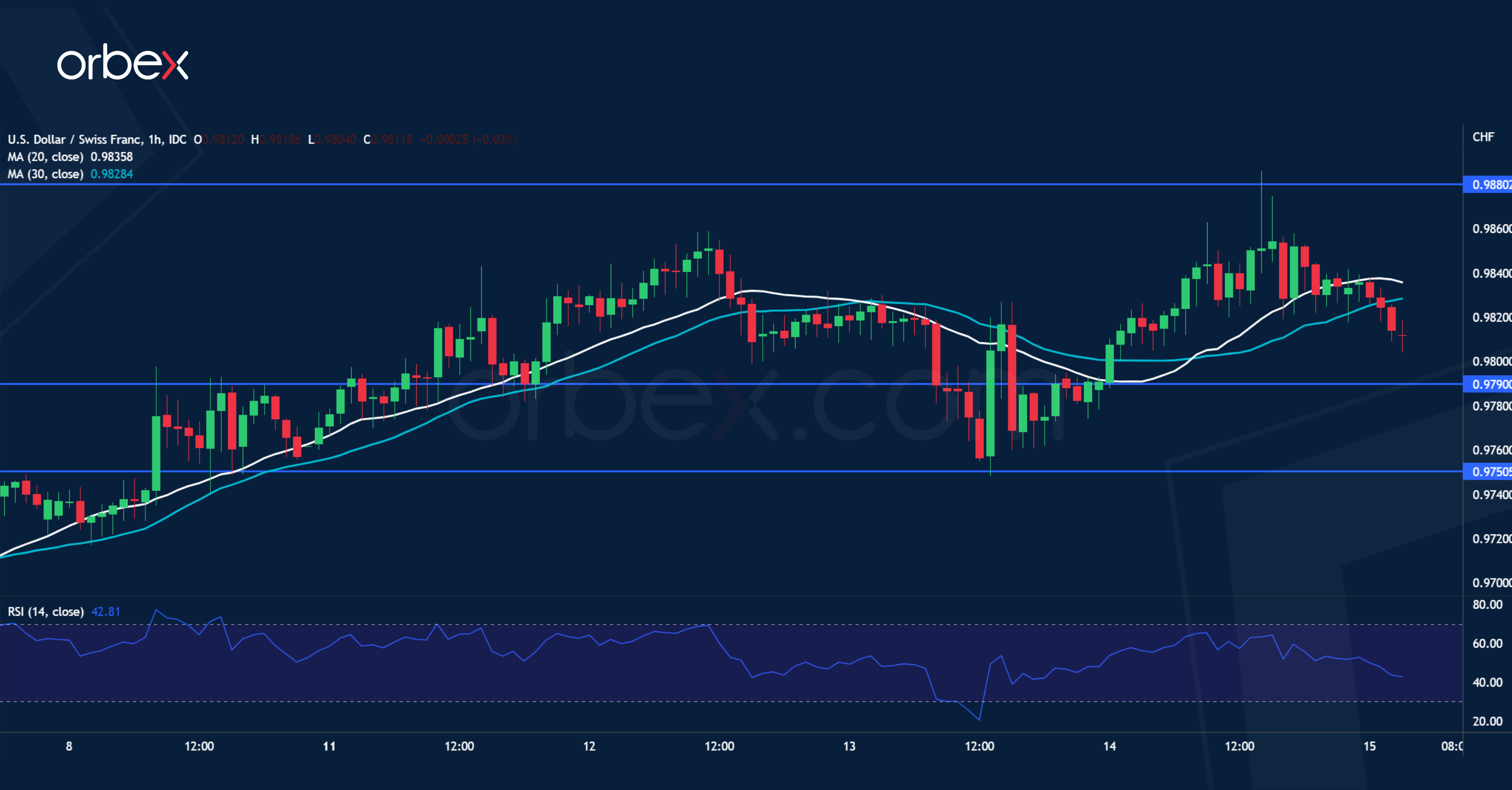 ارتفع الدولار الأمريكي أمام الفرنك مدعوماً بتوقعات برفع كبير لأسعار الفائدة بعد الارتفاع القياسي للتضخم. وقد قوبل التراجع قصير الأمد برغبة شرائية قوية أعلي ٠.٩٧٥٠. ويؤكد الارتفاع أعلى القمة الأخيرة عند ٠.٩٨٥٠ أن المشترين ما زالوا يسيطرون على الاتجاه. كما يشير التقاطع الإيجابي للمتوسط المتحرك إلى تسارع وتيرة الاتجاه الصاعد، وهو ما يمكن أن يشكل عامل جذب لمزيد من العروض في هذه المرحلة. ومع ارتفاع الزوج أعلى ٠.٩٨٨٠، يمكن أن يكون منشأ عمليات تصفية يونيو عند ٠.٩٩٥٠ هو الهدف التالي، والذي من شأن الوصول إليه أن يكمل نمط W على الرسم البياني اليومي. أما مستوى الدعم الأول، فيقع عند ٠.٩٧٩٠.