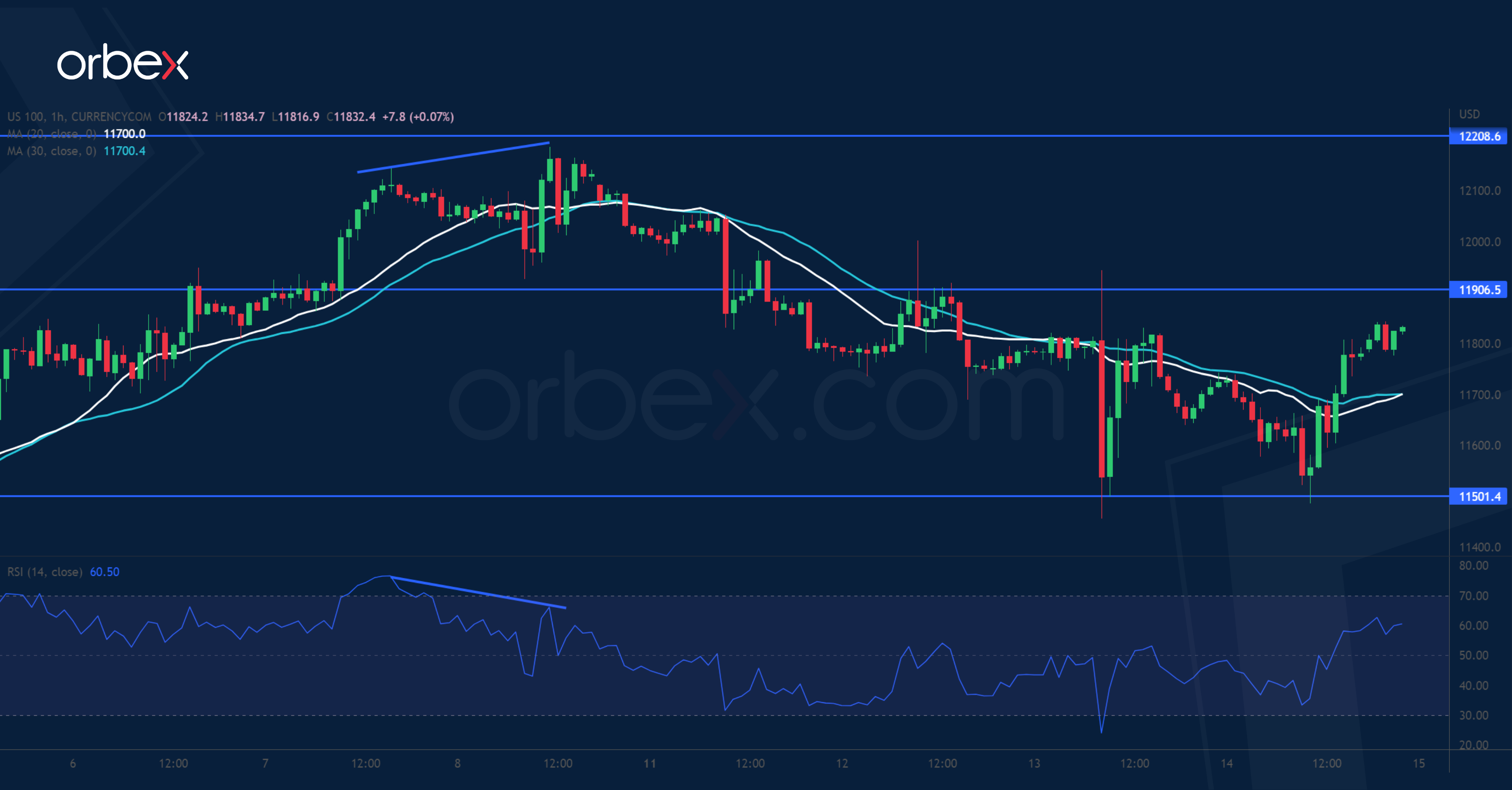 يتماسك مؤشر “ناسداك ١٠٠” فيما يقيم المستثمرون نتائج أرباح الربع الثاني. وتوقف ارتفاع المؤشر عند ١٢٢٠٠، وأظهر انحراف مؤشر القوة النسبية الهابط فقدان الزخم في منطقة العرض الرئيسية. وقد يؤكد الانخفاض إلى ما دون ١١٧٠٠ على أن التحيز لا يزال لصالح الهبوط، وهو ما يضع المشترين في موقف دفاعي. ويعتبر السعر ١١٥٠٠ مستوى رئيسي يتوجب الحفاظ عليه للإبقاء على حركة السعر قائمة. إذ من شأن اختراقه أن يهبط بالمؤشر إلى مستوى الدعم اليومي عند ١٠٥٠٠، حيث قد يكون عرضة لجولة جديدة من عمليات البيع المكثفة. أما المستوى ١١٩٠٠، فهو عقبة رئيسية يلزم التغلب عليها قبل أن يؤسس الانتعاش قاعدة ويكون له تأثير.