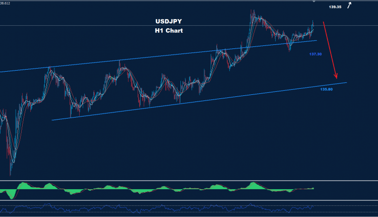 تمكن زوج العملة الدولار/ين من الارتداد مرة أخرى بعد كسره أسفل خط اتجاه الدعم 137.80 كما نرى على الرسم البياني.