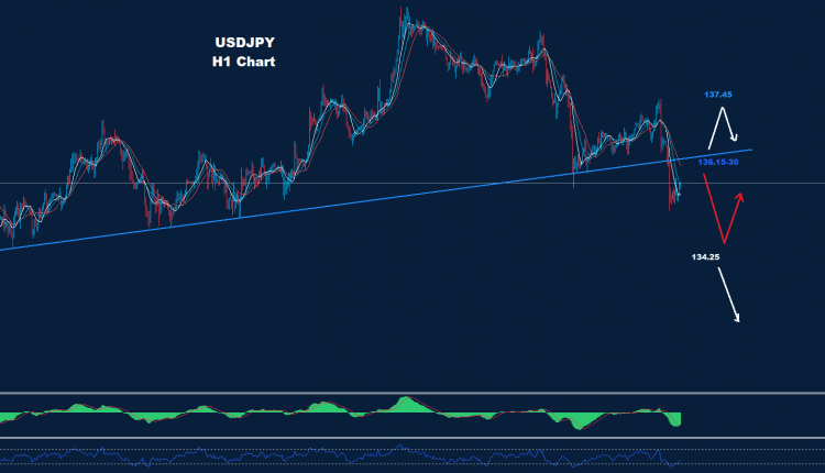 كما نرى في الرسم البياني اليومي، يواجه السوق منطقة تداول بين الدعم 134.25 والمقاومة 137.45 مع منطقة مقاومة متوسطة حول 30-136.15.