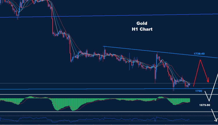 تظهر المستويات خلال اليوم أن الذهب قد يحدد الدعم حول 1700 مما قد يدفع باتجاه تصحيح ارتدادي نحو منطقة 40-1738.