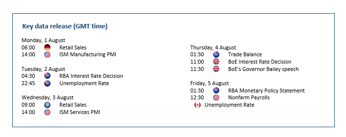 ارتد الجنيه الإسترليني بشكل ايجابي أمام الدولار الأمريكي مع احتمالية رفع بنك إنجلترا لمعدل الفائدة بمقدار نصف نقطة لأول مره منذ عام ١٩٩٧. وكان معدل التضخم في المملكة المتحدة قد سجل أعلى مستوى له في ٤٠ عاماً عند ٩.٤٪، وقد يتعدى التضخم خانة الآحاد في الخريف. وعندما يتعلق الأمر بالاختيار بين مواجهة الأسعار المرتفعة وتفادي الانكماش، فيبدو أن القصة تتكرر من جديد. حتى أن البنك المركزي الأوروبي أصبح أكثر عدوانية مما كان متوقعاً إذ رفع سعر الفائدة بمقدار ٥٠ نقطة أساس، وتسعر السوق أن يقْدم المحافظ “بايلي” وشركاءه على نفس الحركة هذا الأسبوع. وقد يحدث هبوط مفاجئ في حال رفعت الفائدة بمقدار ٢٥ نقطة أساس. وفيما يعد ١.١٨٠٠ دعماً جديداً، يعتبر المستوى ١.٢٣٠٠ العقبة الأولى إذا اكتسب الارتداد زخماً.