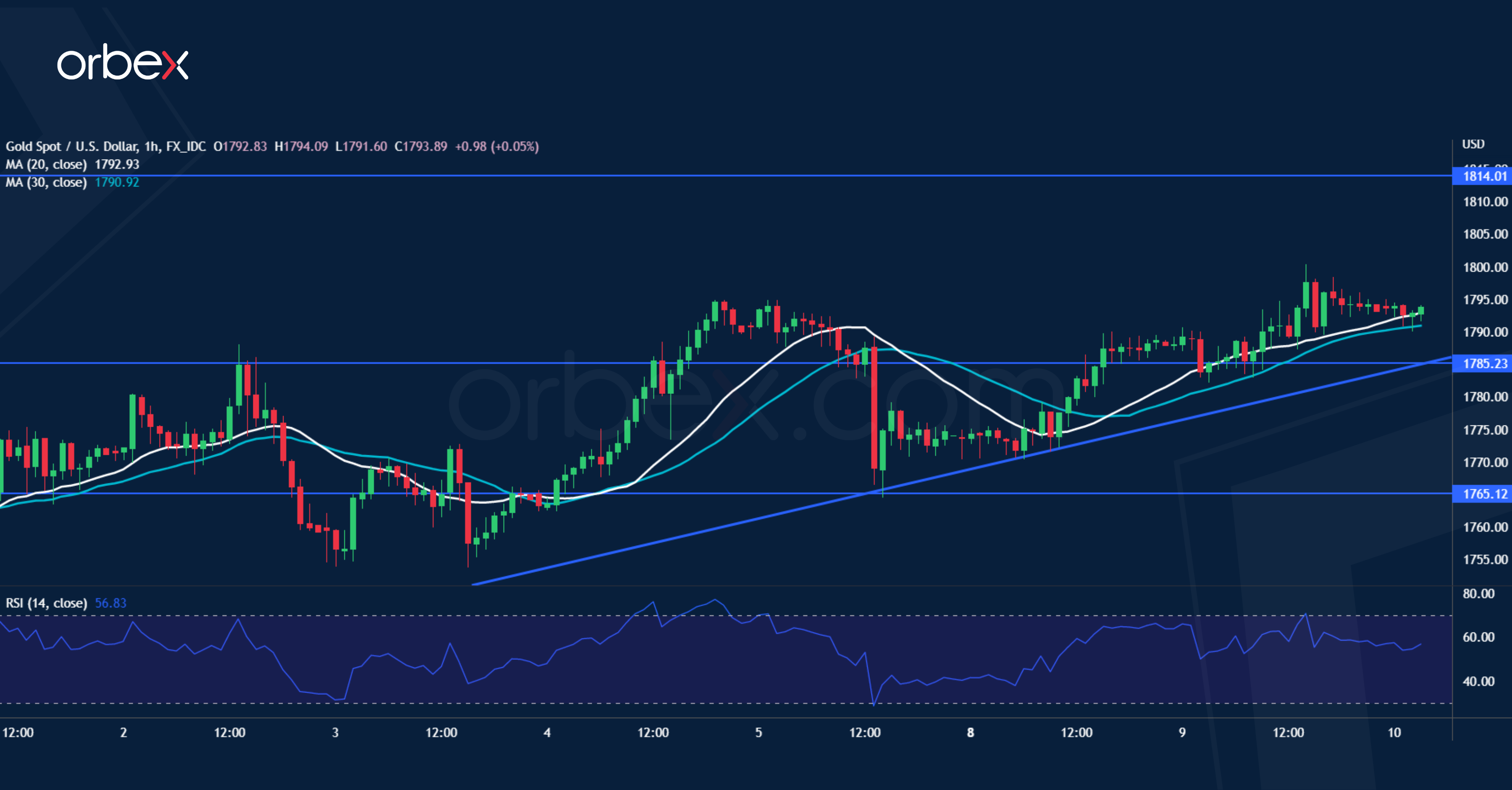 ارتفع الذهب في الوقت الذي تترقب فيه السوق بيانات التضخم الأمريكية. وساعد الاختراق أعلى المتوسط المتحرك لمدة ٣٠ يوماً على اكتساب الانتعاش للزخم. ويشير خط الاتجاه الصاعد من أواخر يوليو إلى التحيز للصعود. وكان التراجع الأخير في الأسعار قد لاقى دعماً أعلى ١٧٦٥، ما يؤكد على أن المعنويات قصيرة المدى لا تزال إيجابية تجاه الذهب. وقد يعيد الاختراق أعلى ١٧٩٥ مشتري الزخم للمشهد ويدفع العرض نحو ١٨١٤. أما المستوى ١٨٥٥ عند بداية عمليات البيع في يونيو، فهو مستوى رئيسي من المتوقع أن تتضاعف صفقات البائعين حال الوصول إليه. ويعتبر المستوى ١٧٨٥ هو الدعم الأول في حال التصحيح.