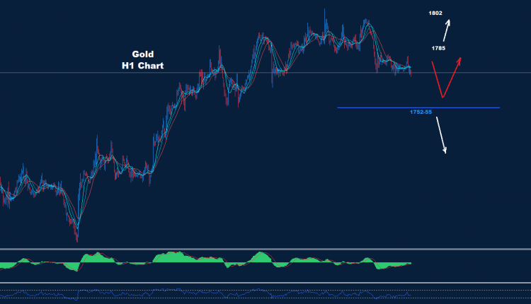 كما نرى على الرسم البياني اليومي ، يواجه الذهب المقاومة الأولى حول 1785 حيث لا يزال ضغط الهبوط يؤثر على السوق لزيارة منطقة 60-1755 والتي بدورها قد تنشط حركة تصحيح ارتدادي صاعدة