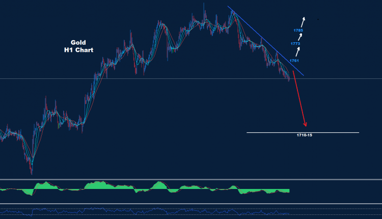 تمكن الذهب من ضرب بضعة دولارات دون مستوى الدعم 1752 والذي قد يكون الإشارة الأولى لحركة هبوط أبعد.