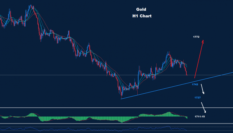 لا يزال الذهب يحتفظ بفرصة لاستئناف هذه الموجة المتقدمة نحو 1772 طالما استمر السوق في الاحتفاظ بالتداولات فوق دعم 1742.
