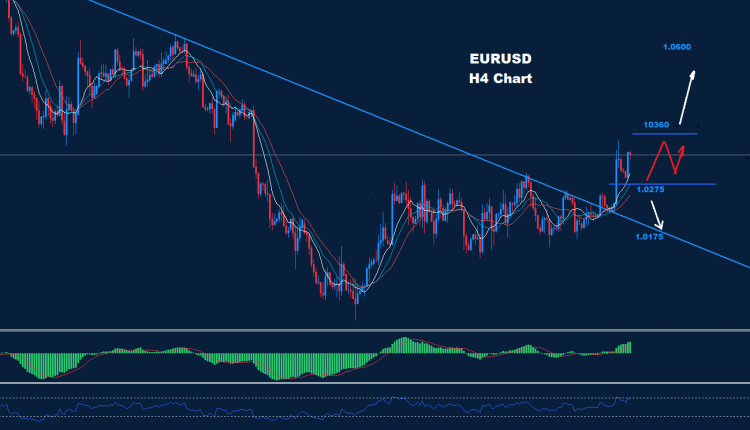 تمكن اليورو من اختراق منطقة 95-1.0275 حيث تمكن من اختبار منطقة المقاومة 60-1.0350