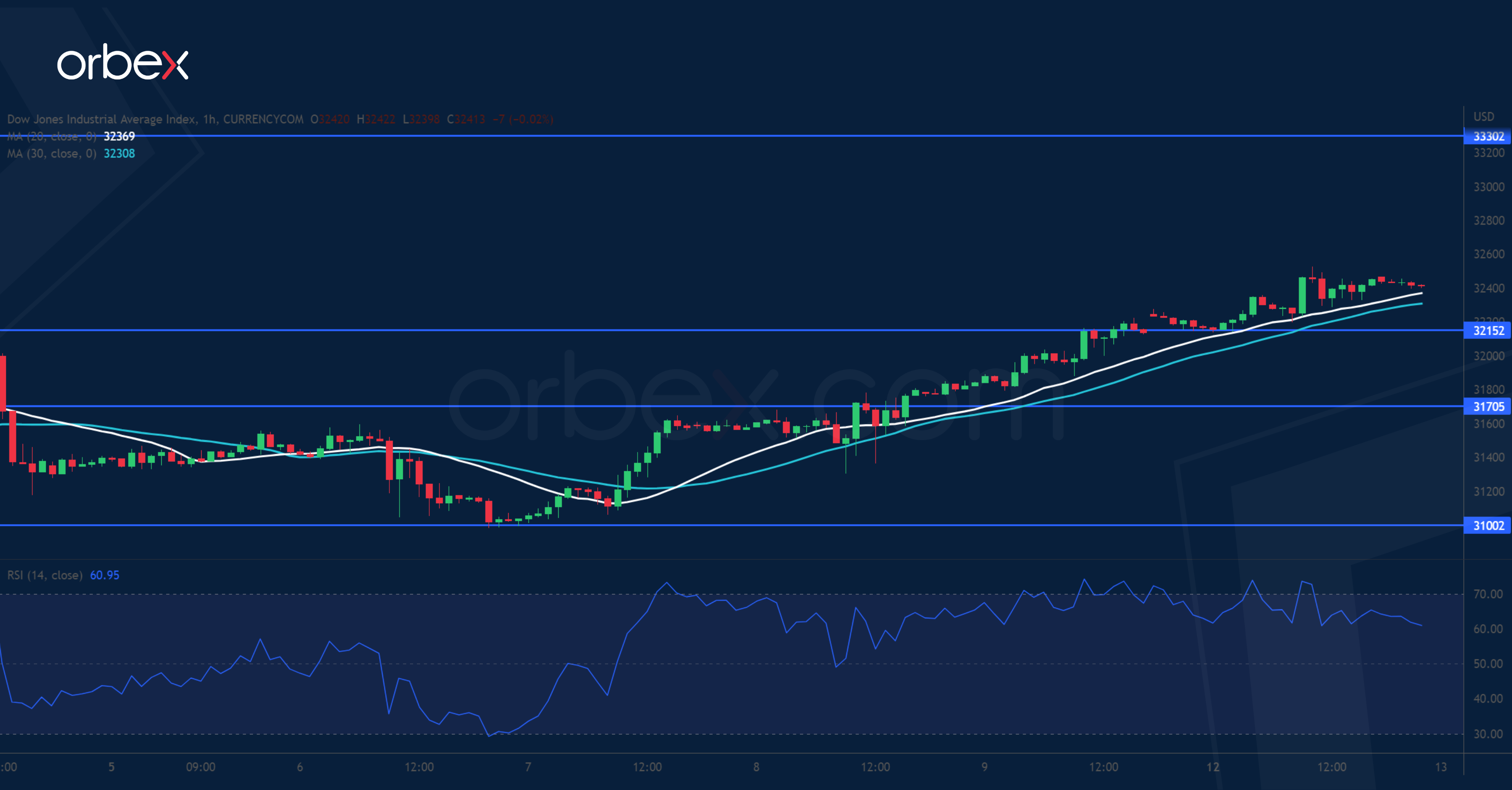 يرتفع مؤشر “داو جونز ٣٠” قبيل صدور مجموعة جديدة من بيانات التضخم الأمريكية. واكتسب الانتعاش الحالي زخماً بمجرد ارتفاع المؤشر أعلى ٣٢٠٠٠، مما تسبب بصعود المؤشر نحو منطقة العرض الرئيسية قرب ٣٣٣٠٠ عند بداية عمليات البيع القوية التي تجددت في أواخر أغسطس. ويمكن توقع ضغوط بيع قوية من أتباع الاتجاه حيث لا تزال الحالة المزاجية للسوق ضعيفة. وقد تحد حالة ذروة الشراء المتكررة لمؤشر القوة النسبية من النطاق الصاعد في منطقة المقاومة. ويقع أقرب دعم عند ٣٢١٥٠، وسيزيد الاختراق الايجابي من العروض ويصل بالمؤشر إلى القمة السابقة عند ٣٤٣٠٠.