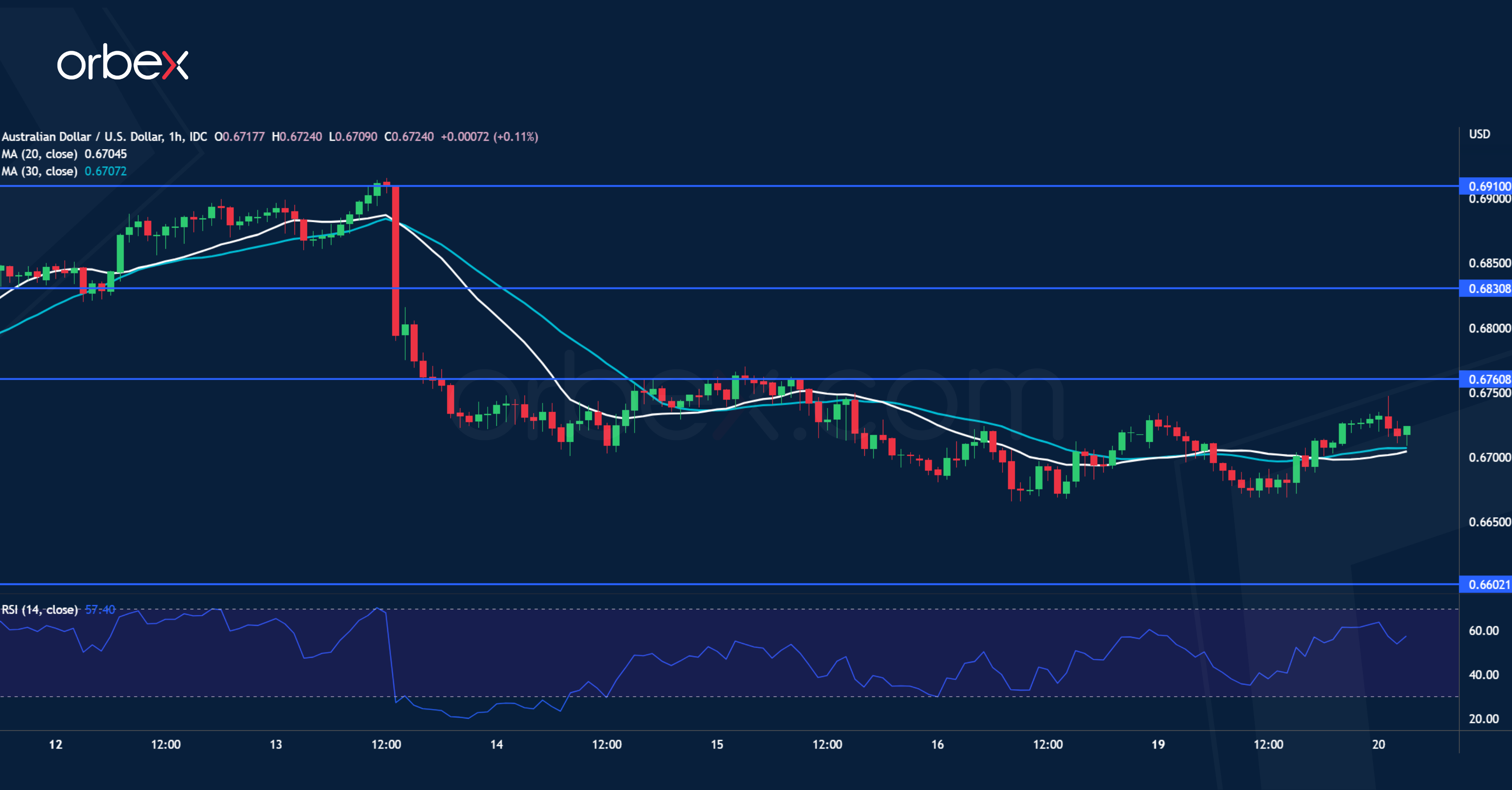 استقر الدولار الأسترالي بعد أن جاءت تلميحات ضمن محضر اجتماع بنك الاحتياطي الأسترالي إلى تباطؤ الزيادات. ويشير غياب الدعم للارتداد الأخير علي نضال المشترين للتمسك بمكاسبهم. وقد يكون الانخفاض دون مستوى الدعم اليومي عند ٠.٦٦٨٠ قد دفع بآخر المشترين إلى الانسحاب واستأنف الاتجاه الهابط على المدى المتوسط. ويمثل المستوى ٠.٦٦٠٠ منذ مايو ٢٠٢٠ دعماً متوسطاً وقد يؤدي اختراقه إلى زيادة الخسائر واتجاه الزوج نحو ٠.٦٥١٠. وعلى الجانب الصاعد، فمن المتوقع أن يبيع أتباع الاتجاه بقوة في منطقة الطلب السابقة عند ٠.٦٧٦٠.