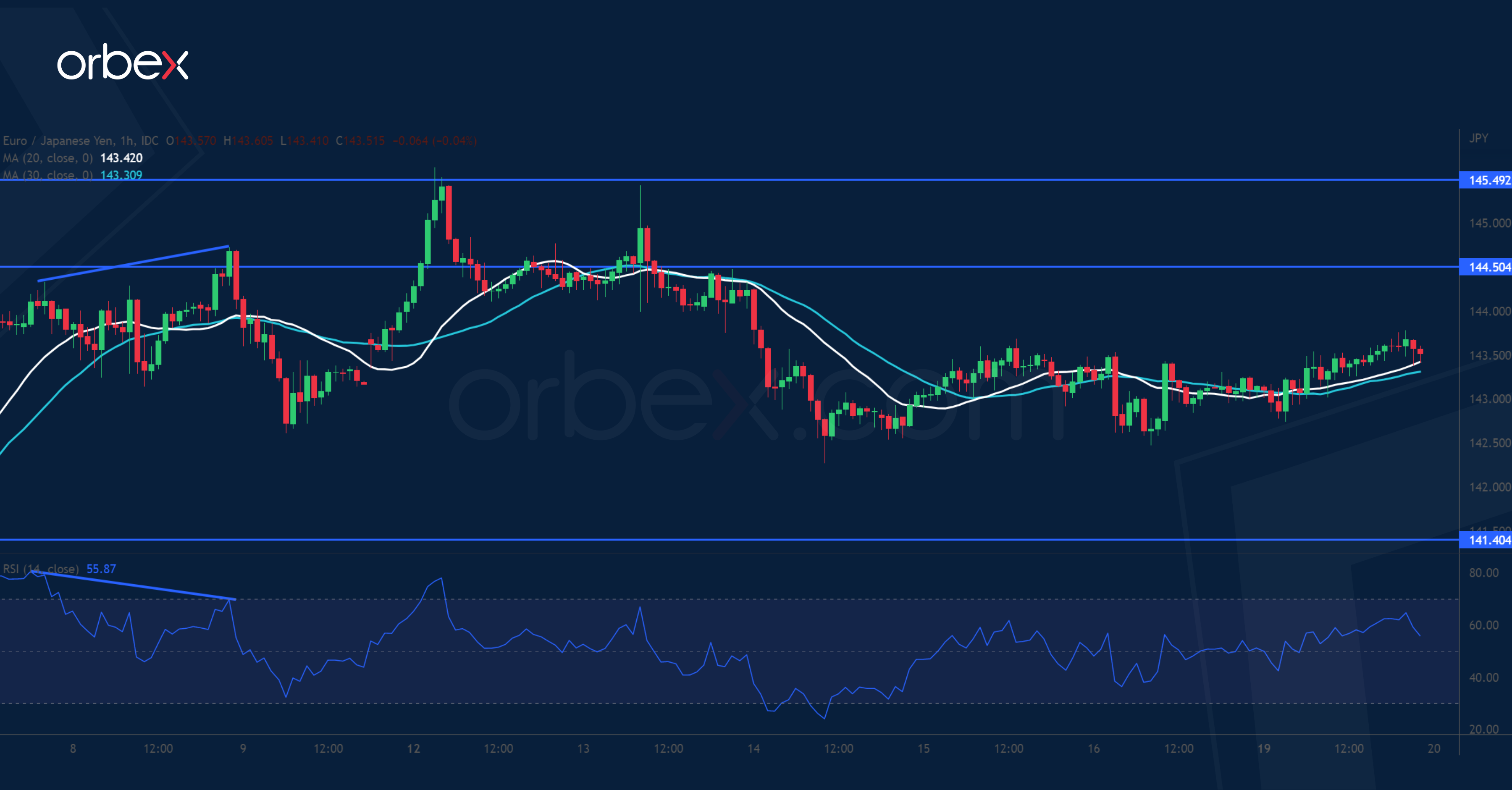ارتفع الين أكثر بعد أن فاق مؤشر أسعار المستهلك لشهر أغسطس التوقعات. ويتطلع الزوج إلى تعزيز مكاسبه الأخيرة بعد أن شق طريقه عبر أعلى مستوياته في يونيو عند ١٤٤.٢٠. ومع إشارة التباين السلبي لمؤشر القوة النسبية إلى تباطؤ في الزخم، يلحقه الهبوط أدنى ١٤٢.٧٠ ليدفع نحو بعض عمليات جني الأرباح. إلا إنه ومن منظور الرسم البياني اليومي، لا يزال التحيز نحو الاتجاه الصاعد قائماً. ويتزامن ١٤١.٤٠ حيث بدأ الاختراق الإيجابي لهذا الشهر مع المتوسط المتحرك لـ ٢٠ يوماً، مما يجعله منطقة ازدحام. ويمكن أن يستأنف الارتفاع حال الإغلاق أعلى ١٤٤.٥٠.