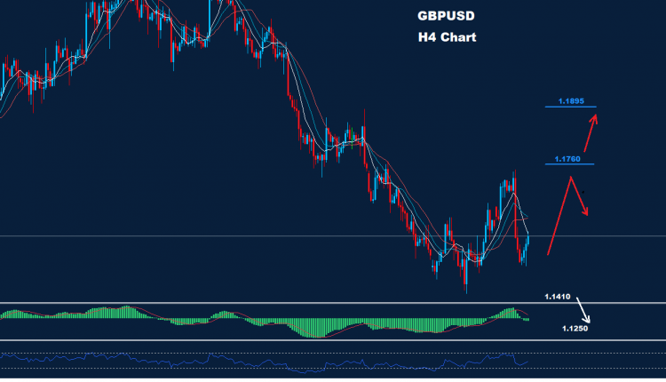 كما نرى على الرسم البياني، لا يزال لدى السوق فرصة لحركة ارتداد أخرى لاختبار مستوى المقاومة 1.1760 طالما استمر السوق في الحفاظ على التداولات فوق 1.1410.