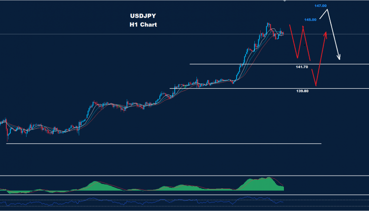 فوق 145.00، هناك فرصة لتقدم أبعد نحو 147.00 قد تضرب السوق قبل تصحيح هبوط آخر يصيب الزوج باتجاه 141.70.