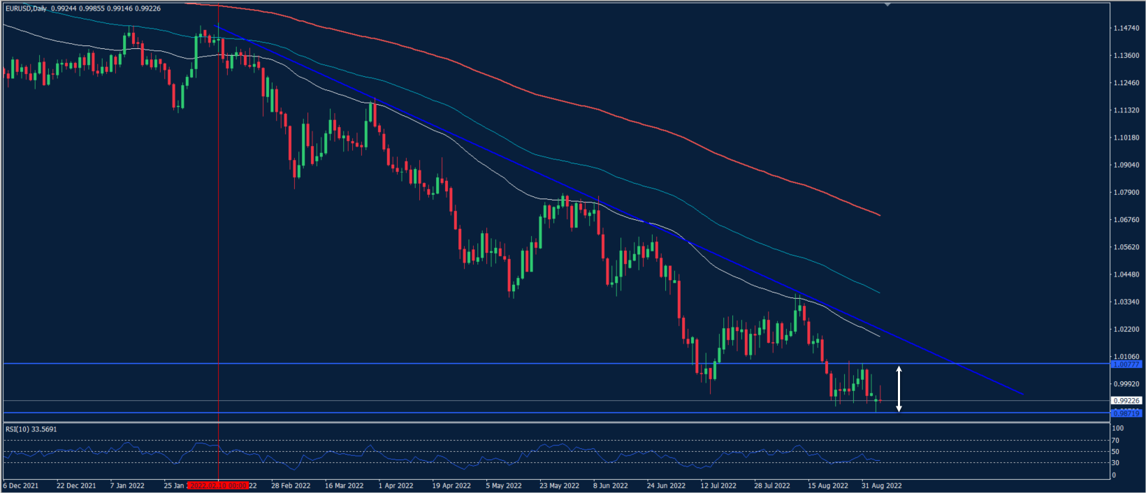على الجانب الهابط، في حال كسر المستوى 0.9900 فمن المتوقع أن يواصل الزوج الهبوط إلى المستوى 0.98 ويليه المستوى 0.9750.