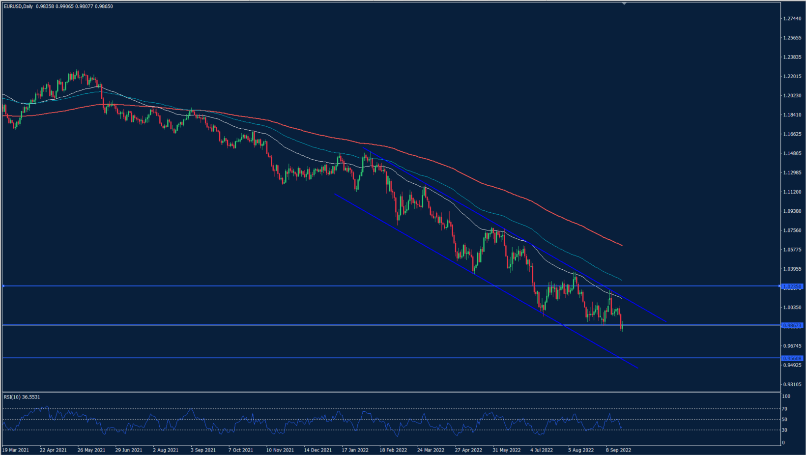 يجري تداول الزوج داخل قناة سعرية هابطة على الإطار الزمني اليومي مما يبقي على النظرة السلبية على المدى الطويل بشرط استقرار تداولات الزوج داخل القناة السعرية وأسفل نطاق المقاومة 1.0250/300 باستهداف المستوى 0.9600. على المدى المتوسط يجري تداول الزوج قرب مستويات دعم حالية بالقرب من 0.9870 ويفضل كسر المستوى 0.9800 لتعزيز التمركزات البيعية.