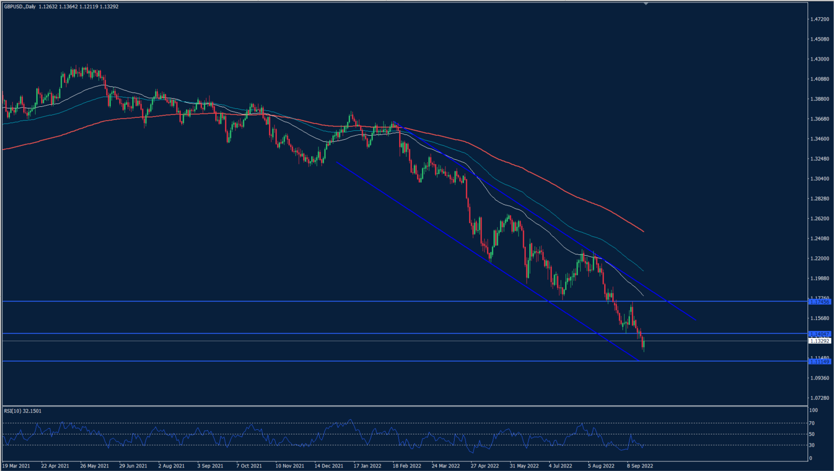 يجري تداول الزوج داخل قناة سعرية هابطة على الإطار الزمني اليومي، مما يدعم استمرار النظرة البيعية على المدى الطويل طالما استقرت الأسعار داخل القناة السعرية وأسفل مستوى المقاومة 1.1700. ومن المتوقع أن يواجه الزوج مقاومة قرب 1.14 وفي حال فشل الزوج في اختراق هذا المستوى، فمن المتوقع أن يواصل الهبوط إلى المستوى 1.1200 ويليه 1.1150.