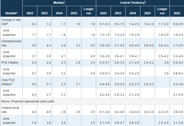 يوضح الجدول التالي التوقعات الاقتصادية الصادرة عن الفيدرالي الأمريكي