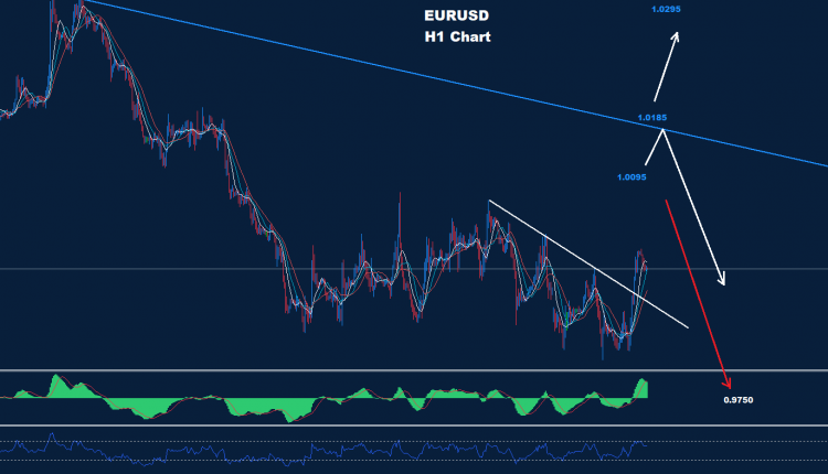 كما نرى على الرسم البياني، لا يزال السوق يواجه مقاومة حول 1.0095 حيث طالما استمر السوق في الاحتفاظ بالتداولات دون تلك المقاومة، فإن ضغط الاتجاه الهبوطي لا يزال نشطاً نحو الهدف 0.9750.