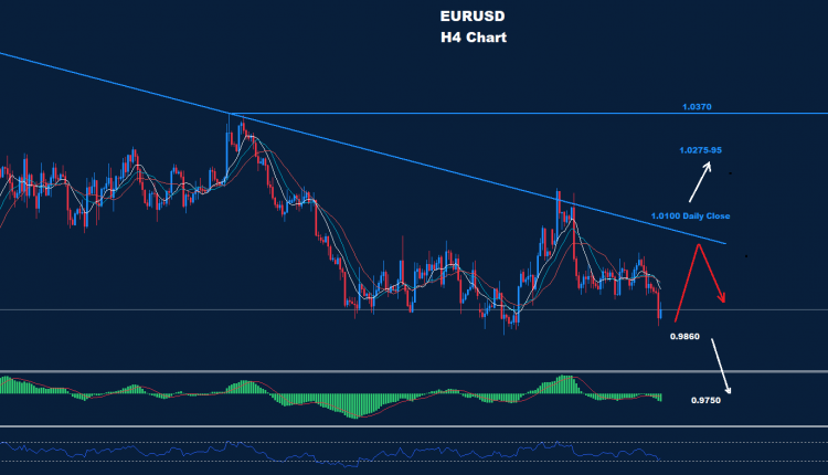 تحت 0.9860 فإن مزيد من الانخفاض نحو 0.9750 وربما 0.9600 قد يضرب السوق.