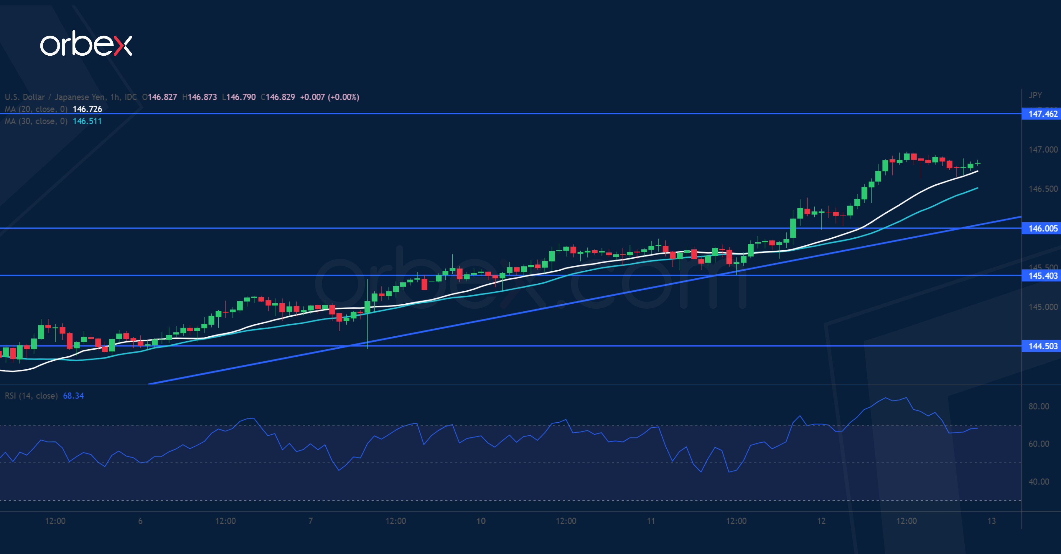 استقر الدولار الأمريكي بعد أن أظهر محضر اجتماع بنك الاحتياطي الفيدرالي بعض الاعتبار لمخاطر الركود. واكتسب الارتفاع زخماً بعد أن اخترق الدولار القمة الواقعة عند ١٤٥.٨٠. ويؤكد خط الاتجاه الصاعد على استئناف مسيرة الاتجاه الصاعد. وقد يؤدي غياب عمليات البيع إلى دفع الزوج نحو أعلى مستوى له في ٢٤ عاماً عند ١٤٧.٥٠. ومع دخول مؤشر القوة النسبية إلى منطقة ذروة الشراء، قد يستغل الدولار هذا الزمر لالتقاط أنفاسه. ويقع الدعم الأول عند المستوى النفسي ١٤٦.٠٠٠ الواقع على خط الاتجاه، و١٤٥.٤٠ عند قاعدة الاختراق هو خط الدفاع الثاني للمشترين.