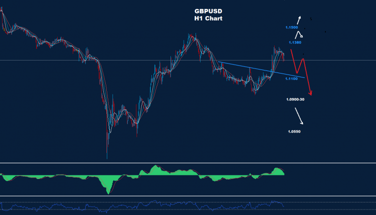 كما نرى على الرسم البياني، قد يواجه السوق موجة هبوط أخرى طالما استمر السوق في الاحتفاظ بالتداولات دون 1.1500 بينما يقف الدعم عند 1.1100 و 1.0900.