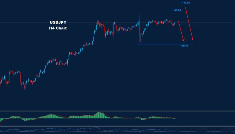 نصحنا الأسبوع الماضي بأن أي أسعار أعلى من 145.00 قد تستدعي تدخلًا آخر من بنك اليابان لدعم الين.